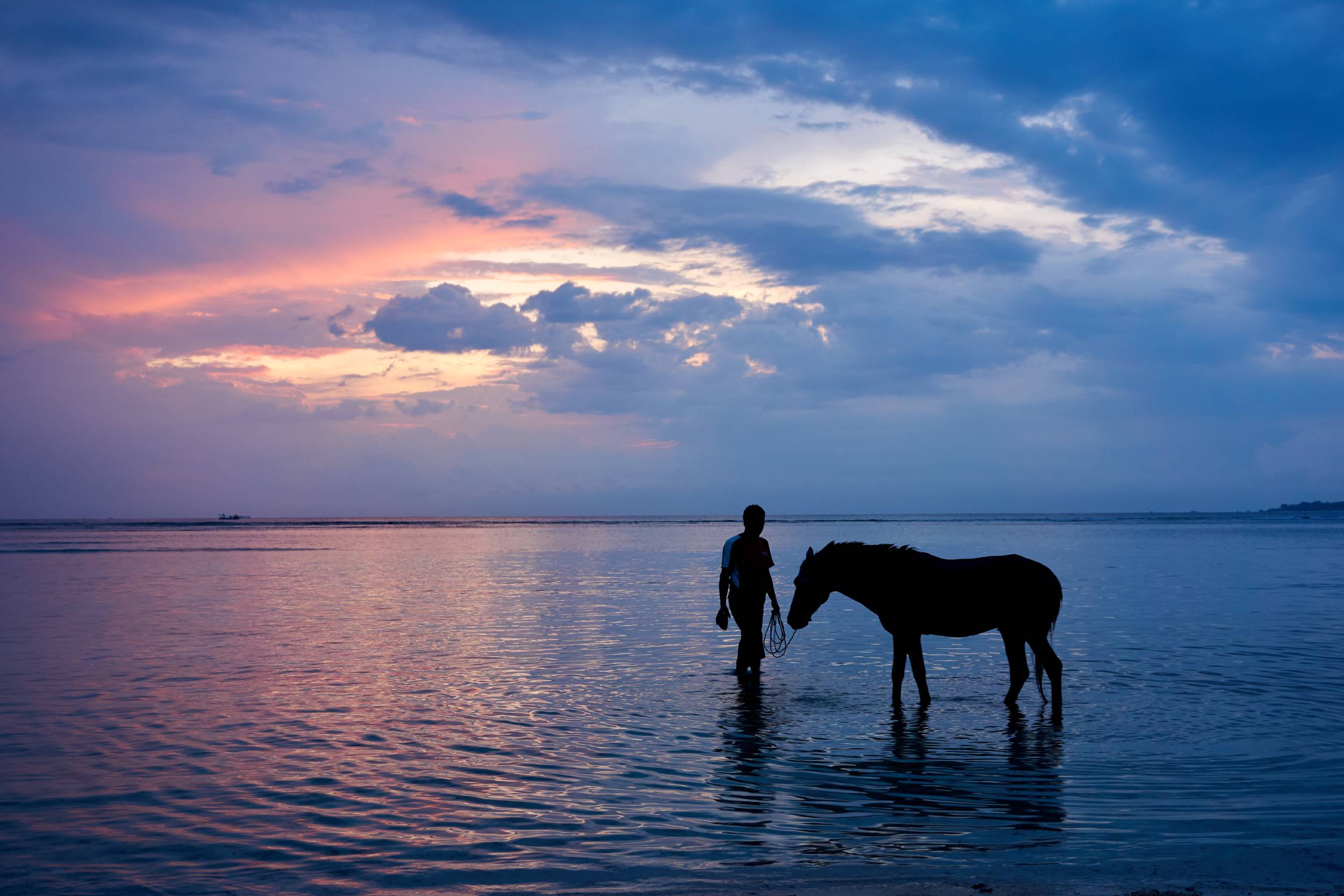 On Gili Air I was lucky to see this scene with a horse being washed in the sea by its owner.