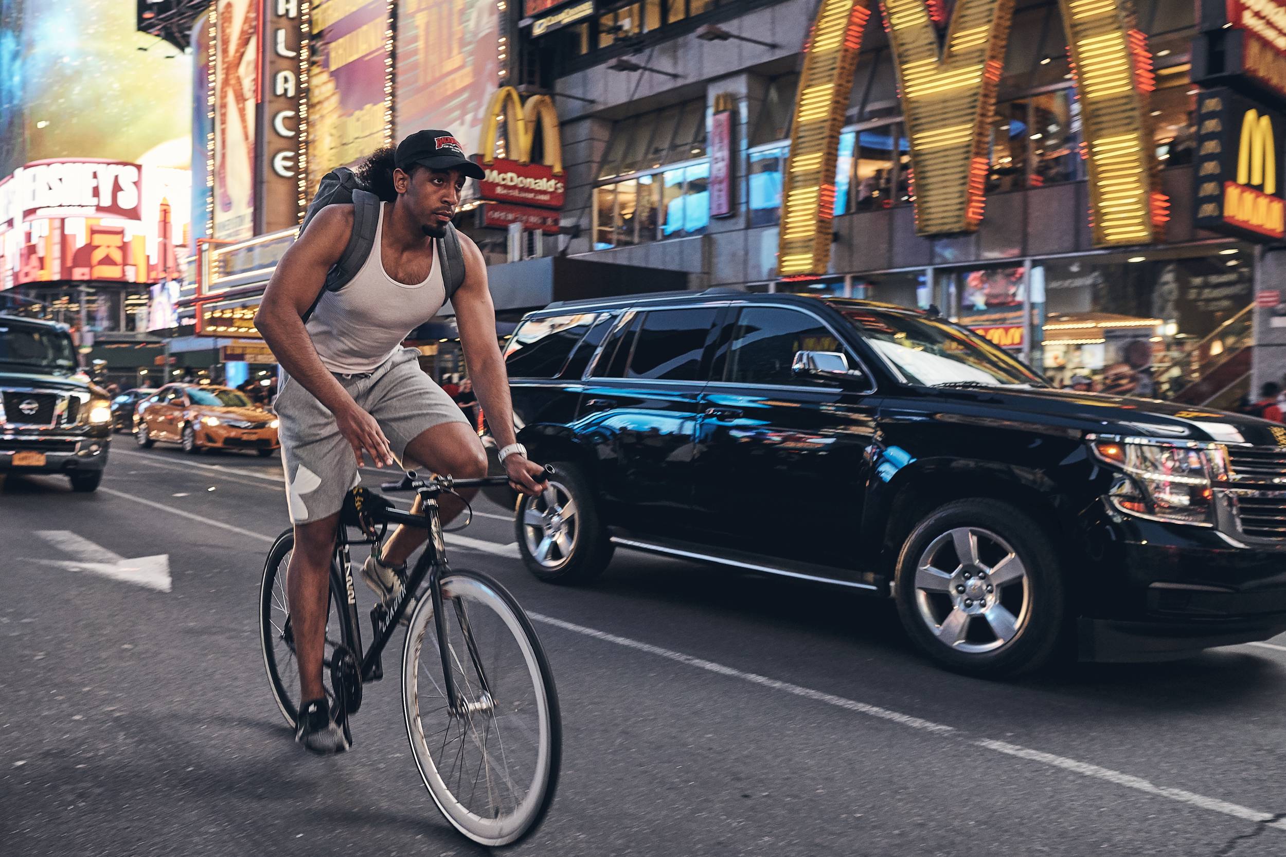 I wanted to time the image just so for the yellow cab to form a point of interest in the image.
